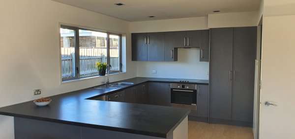 A modern, well appointed kitchen. Bosch appliances, morning sun, and a lake view from the bench!